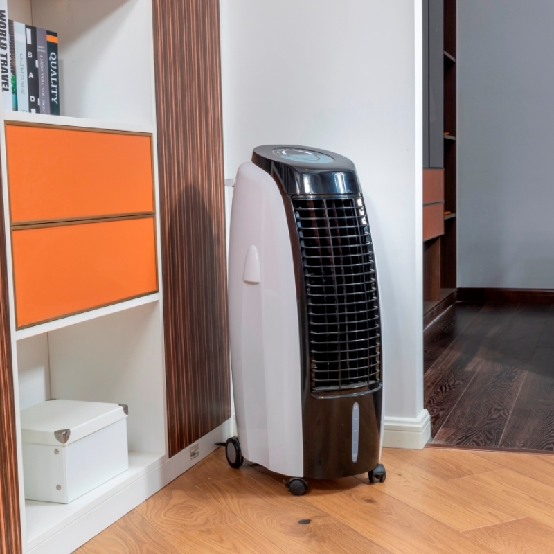 Siboly evaporative air cooler is a device that cools air through the evaporation of water. Evaporative cooling differs from typical air conditioning systems which use vapor-compression or absorption refrigeration cycles. Evaporative cooling works by employing water's large enthalpy of vaporization. The temperature of dry air can be dropped significantly through the phase transition of liquid water to water vapor (evaporation), which can cool air using much less energy than refrigeration. In extremely dry climates, evaporative cooling of air has the added benefit of conditioning the air with more moisture for the comfort of building occupants.